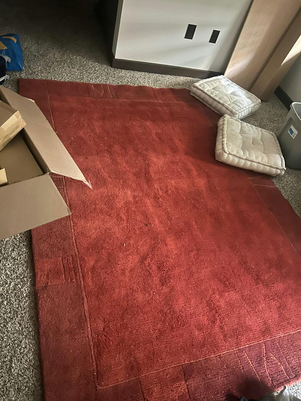 To help the process, we recommend placing the rug in a well-ventilated area. If needed, you can gently air it out to speed up the natural dissipation of the scent.